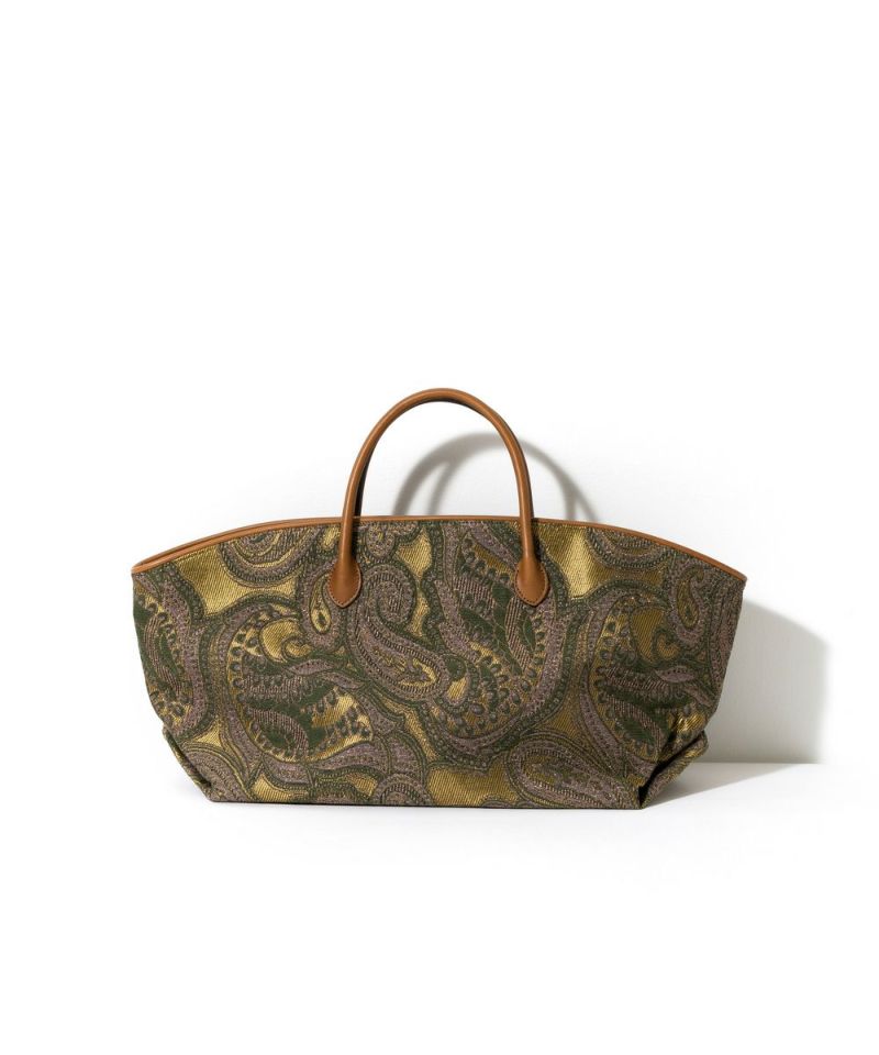 大胆な横長フォルムのマルシェバッグ。 荷物を入れた時にはその重さを感じないようにハンドルは細さや内側の芯材にもこだわりを尽くしました。