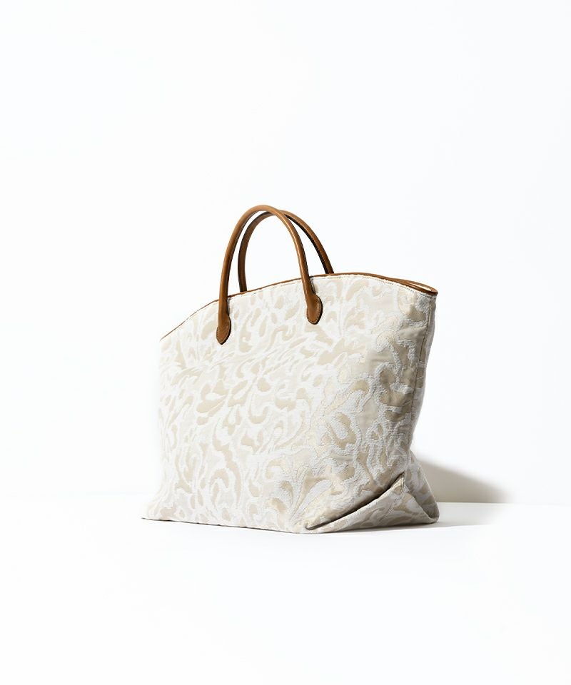 大ぶりなマキシトートバッグは持った時に繊細に手に馴染みながらも、 荷物を入れた時にはその重さを感じないようにハンドルは細さや内側の芯材にもこだわりを尽くしました。