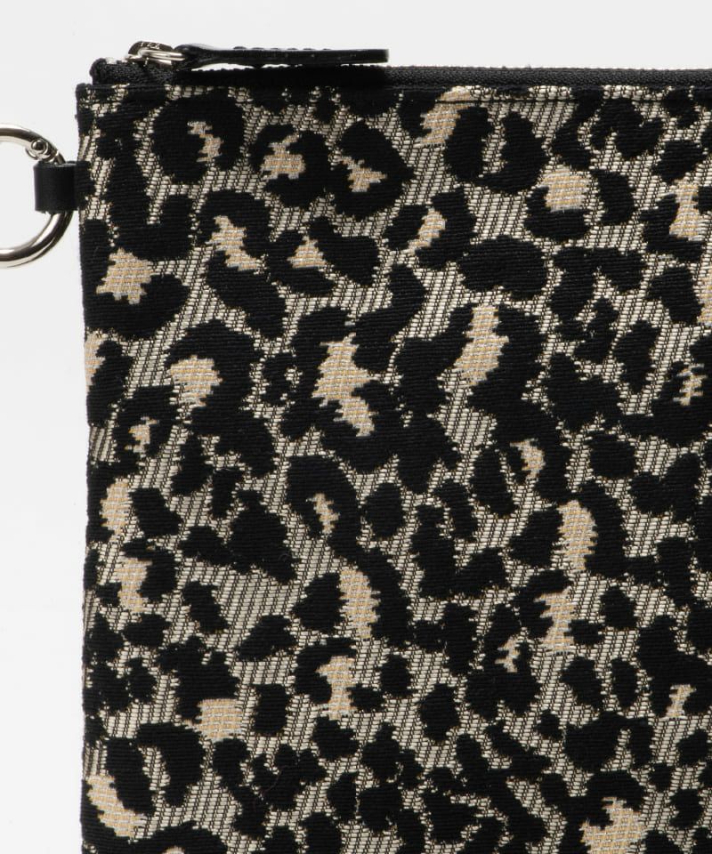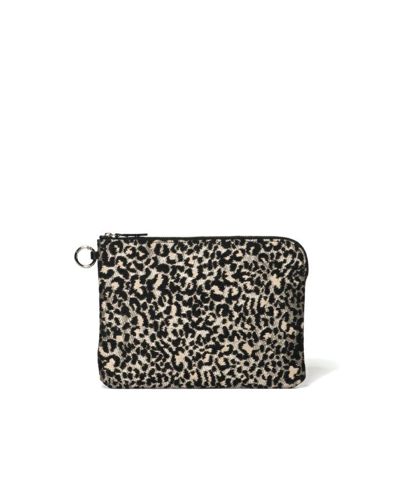 ジャカード(Deveaux/デヴォー社製)の存在感を生かしたミニポーチが仲間入り。MサイズはiPad miniが収納可能なB5サイズで、内側に仕切りがありメモ帳やペンも収納できマルチに活躍します。うすマチなのでバッグの中でもかさばらず、ミニサイズのお財布やハンカチなども入りミニクラッチとしてもお使いいただけます。カラビナ金具付きで手持ちのストラップをつけて使用することもでき、生地にも裏加工を施しているのでしっかりした厚みで高級感があります。