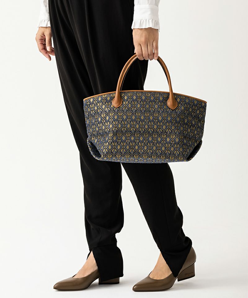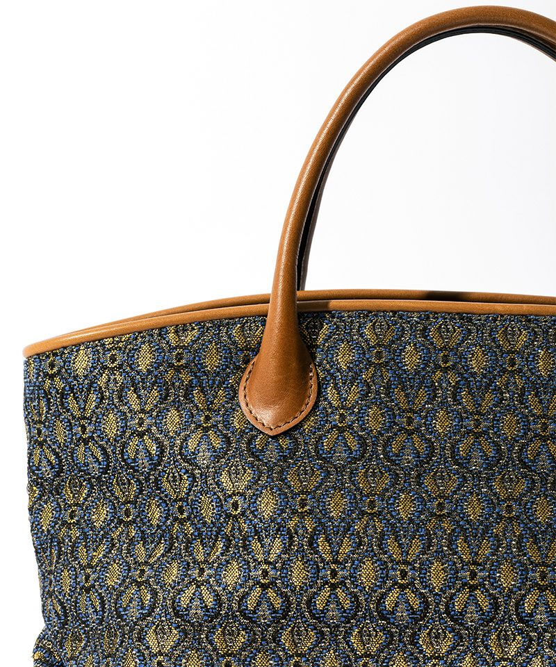 定番のマキシトートバッグ、マルシェトートバッグに加えて、持ちやすいミニサイズの[MINI TOTE]が仲間入り。 スタイリングのアクセントとして持ちやすいサイズ感と横長のバランスがスタイリッシュ。ペットボトル、長財布、ポーチ、キー、手帳など必要なアイテムがきちんと収まります。どこかオリエンタルな空気が香る幾何学模様の<TAPESTRY>。