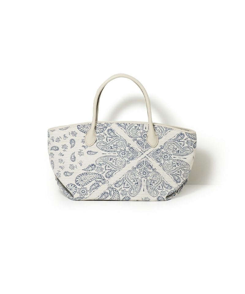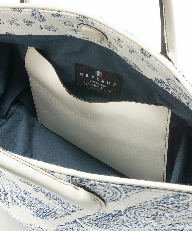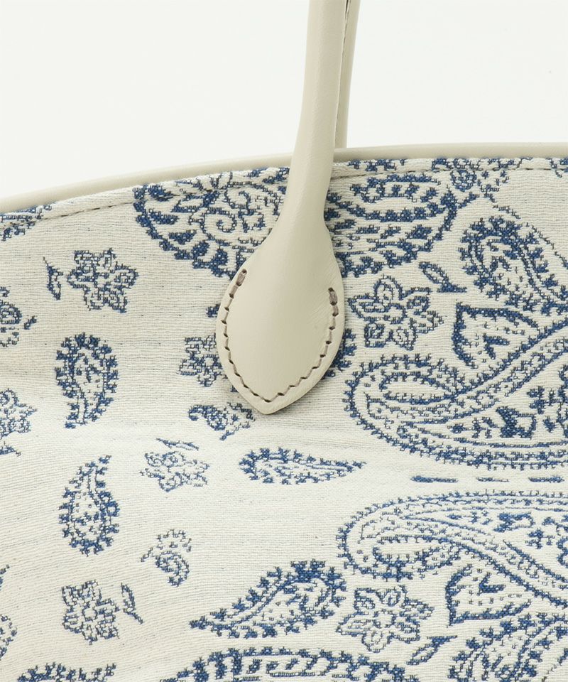 ハンドステッチをあしらったような淡いトーンのペイズリー柄が印象的な”VOYAGE”。バッグを開けたときにアイキャッチとなるインナーカラーもペイズリーのカラーと同色のブルーに。