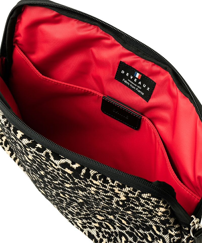 ’22AW Collectionから新しく仲間入りをしたPC/ドキュメントケース。DEVAUX社のテキスタイルと、発色豊かなインナーとのカラーコントラストが楽しいアイテム。13インチのPCが収まるケースはインナーにバンドが付いており、書類等が中で動かずにスマートに収納できます。中の緩衝材が大切なPCをしっかりと保護してくれます。深さのある大きめのインナーポケットにはUSBや手帳、キー、ミラーなどを日常に必要な小物を忍ばせて。オフィス内を移動するときのミニバッグとしても使えます。銀糸を織り込んだリュクスなジャカード生地がレオパード柄をドラマティックに表現する<LEOPARD>。インナーはパリジェンヌのルージュやネイルカラーを彷彿とさせるレッド。